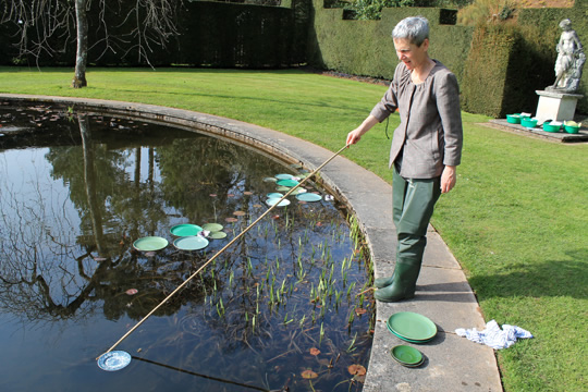On Mothering Sunday 2014, a little before the start of the water lily season, 5 mini-fleets of imposters were introduced to the pool in an attempt to add some early colour and extend the Pool Garden's season of interest. Wayward and half-hardy, the exotic imposters were nurtured and nudged towards the structured perfection of their surroundings.
